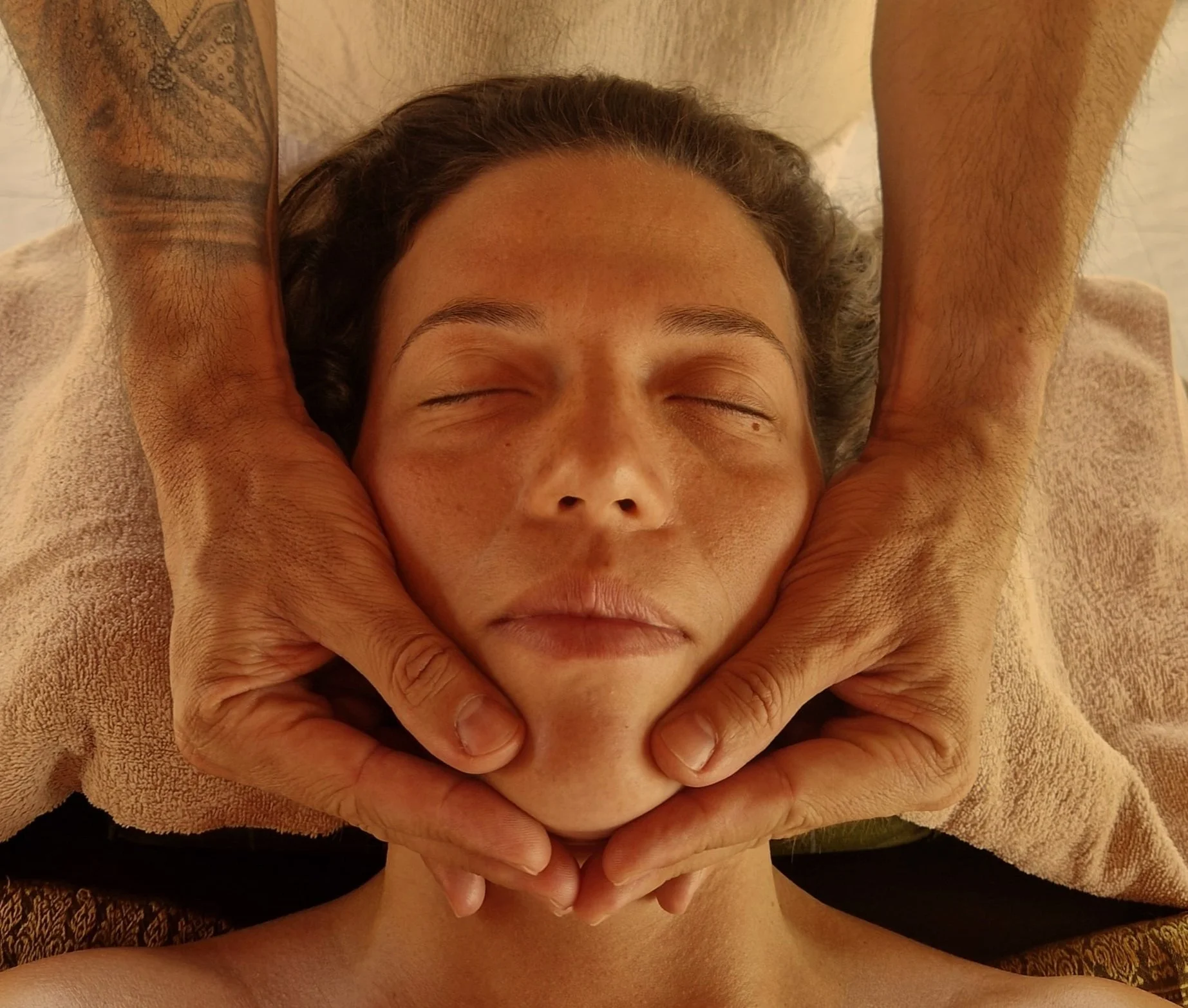 Mit fliessenden Bewegungen und warmen Ölen, die auch über die Brust bis hin zum Bauch reichen, fördert diese Massage die Entspannung. Sanfte, gezielte Berührungen verleihen der Gesichtshaut strahlende Frische, entspannen die Kopfhaut und beruhigen das gesamte Nervensystem.